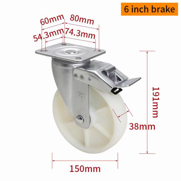 The EDL Medium Duty 6-inch TPA Plate Caster 666P-26 is engineered for heavy-duty applications, supporting up to 250kg while ensuring smooth movement and long-lasting durability. The white TPA wheel features a 67D hardness, offering superior wear resistance, impact absorption, and floor protection, making it ideal for various industrial and commercial environments. Designed for extreme conditions, it maintains stable performance in temperatures ranging from -20°C to 120°C. The reinforced 4mm thick plate mounting ensures enhanced strength and load capacity, making it a reliable choice for material handling, warehouse carts, and machinery. The precision dual-bearing system allows for effortless rolling, reducing push force even under full load. Equipped with dual brake and side brake options, this caster provides secure stopping power and excellent control, ensuring operational safety.